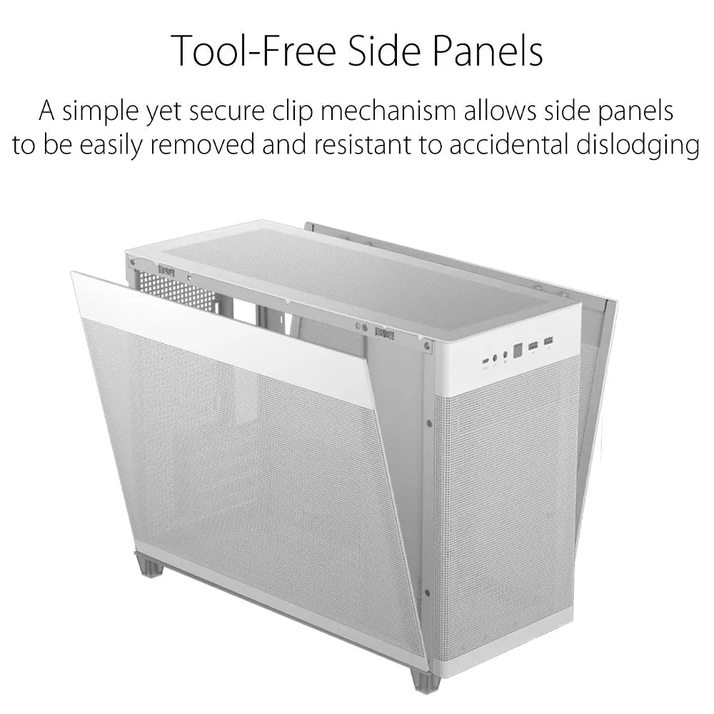 ASUS Cabinet comes with Tool-Free Side Panels, a simple yet secure clip mechanism allows chassis side panels to be easily removed and resistant to accidental dislodging.