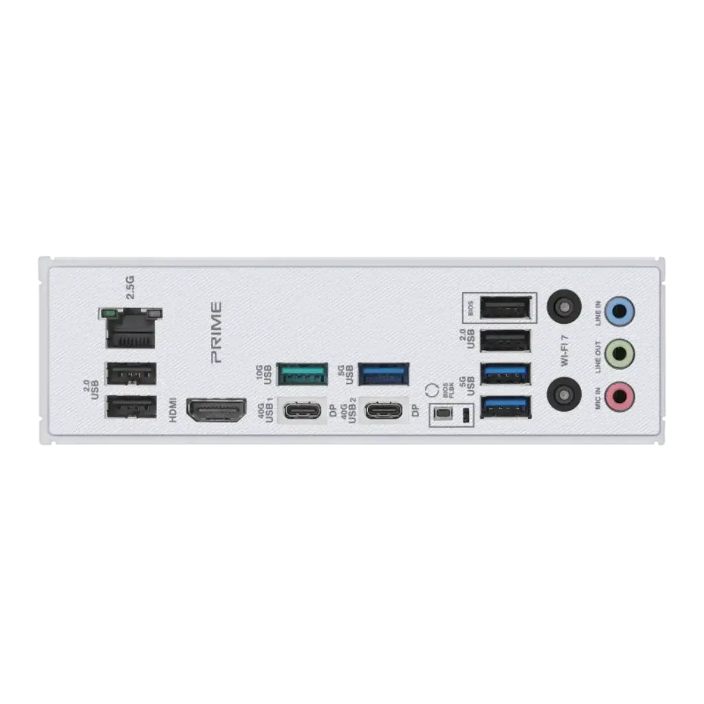 2 x USB4® (40Gbps) ports (2 x USB Type-C®) 1 x USB 10Gbps port (1 x Type-A) 3 x USB 5Gbps ports (3 x Type-A) 4 x USB 2.0 ports (4 x Type-A) 1 x HDMI™ port 1 x Wi-Fi module 1 x Realtek 2.5Gb Ethernet port 3 x Audio jacks 1 x BIOS FlashBack™ button |