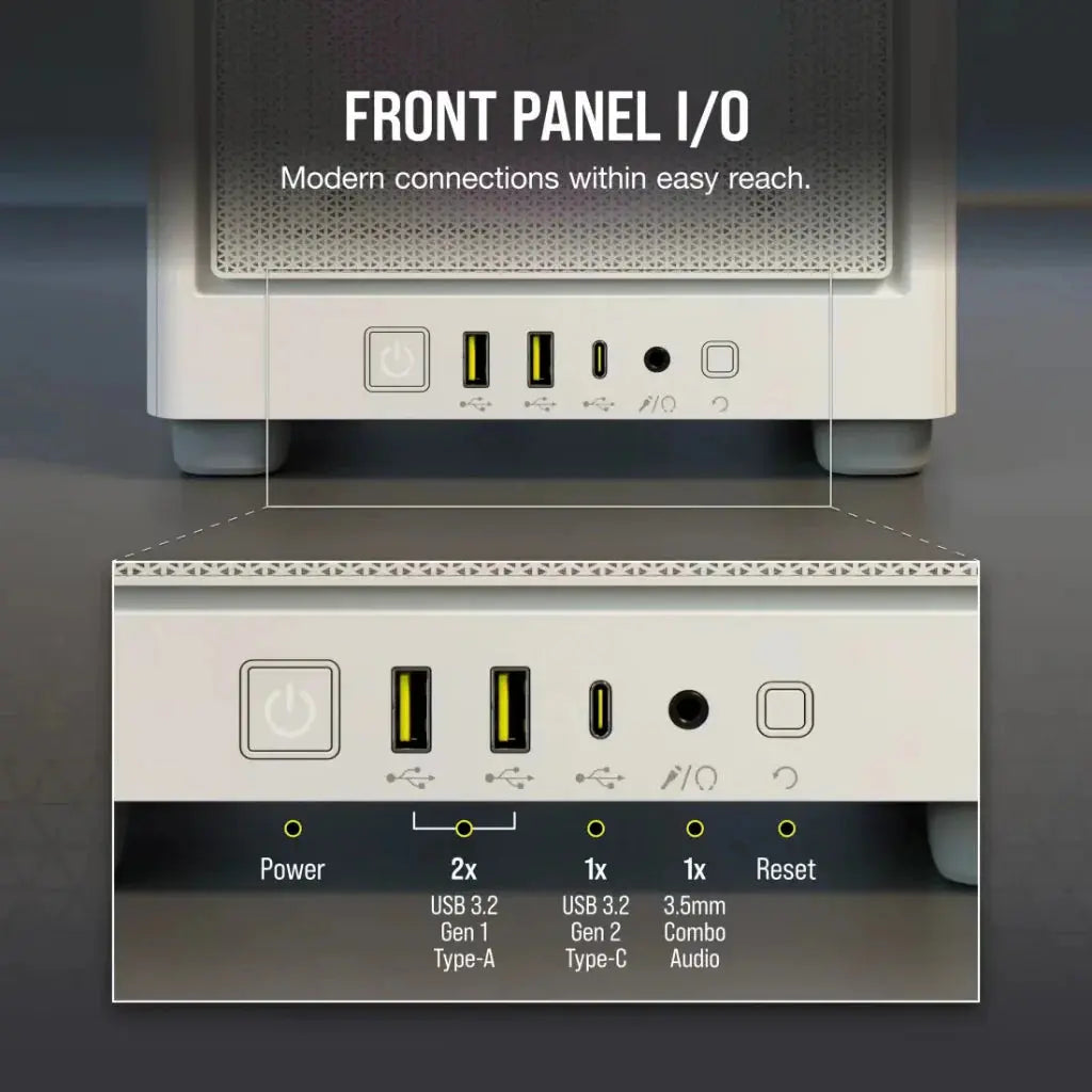 Modern Front Panel I/O: Equipped with a USB 3.2 Gen 2 Type-C port, 2x USB 3.2 Gen 1 Type-A ports, and a combination audio/microphone jack for easy access to your peripherals.