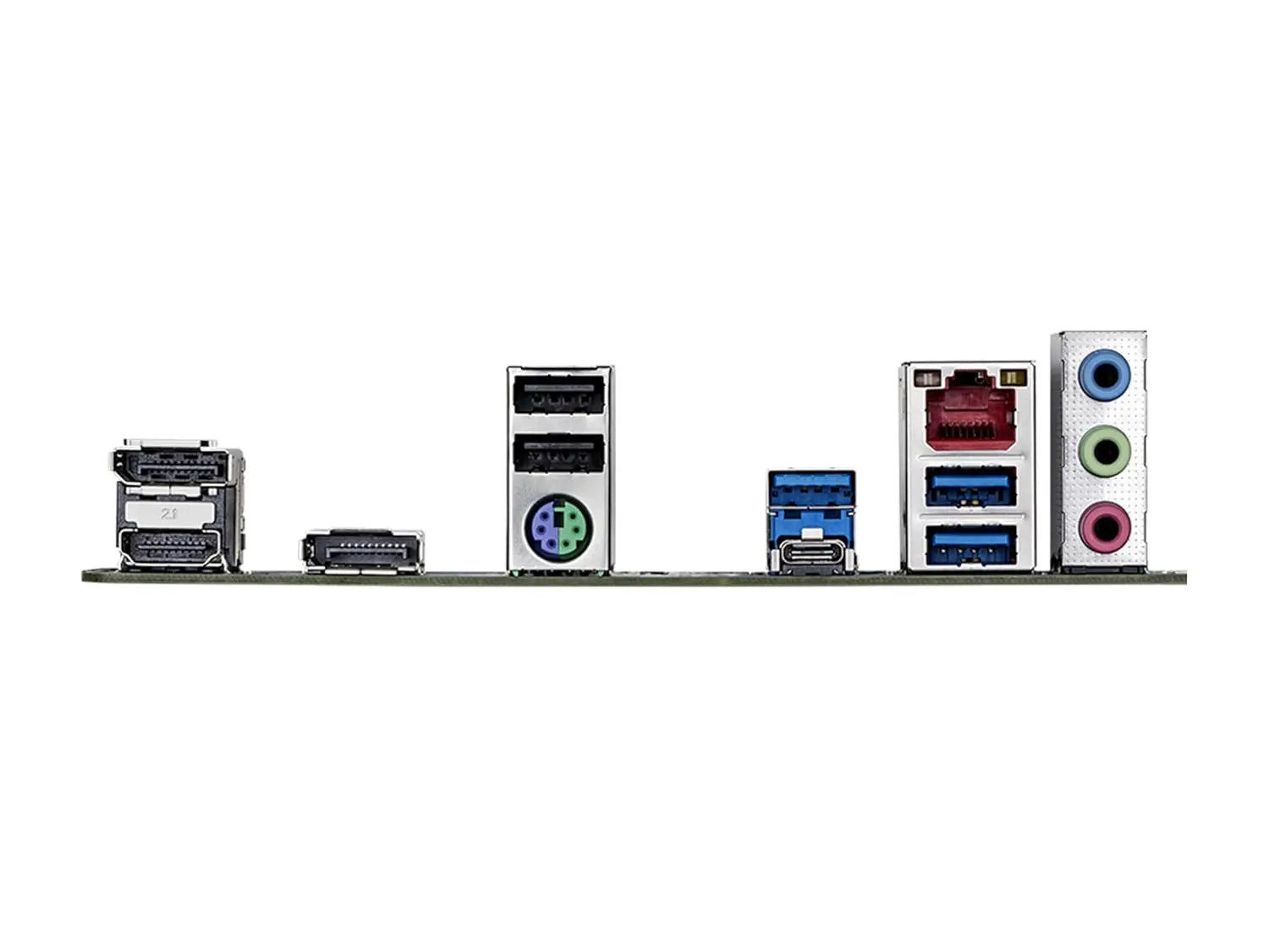 1 x PS/2 keyboard/mouse port 1 x USB Type-C port, with USB 3.2 Gen 1 support 3 x USB 3.2 Gen 1 ports 2 x USB 2.0/1.1 ports 1 x HDMI port 2 x DisplayPorts 1 x RJ-45 port 3 x audio jacks |