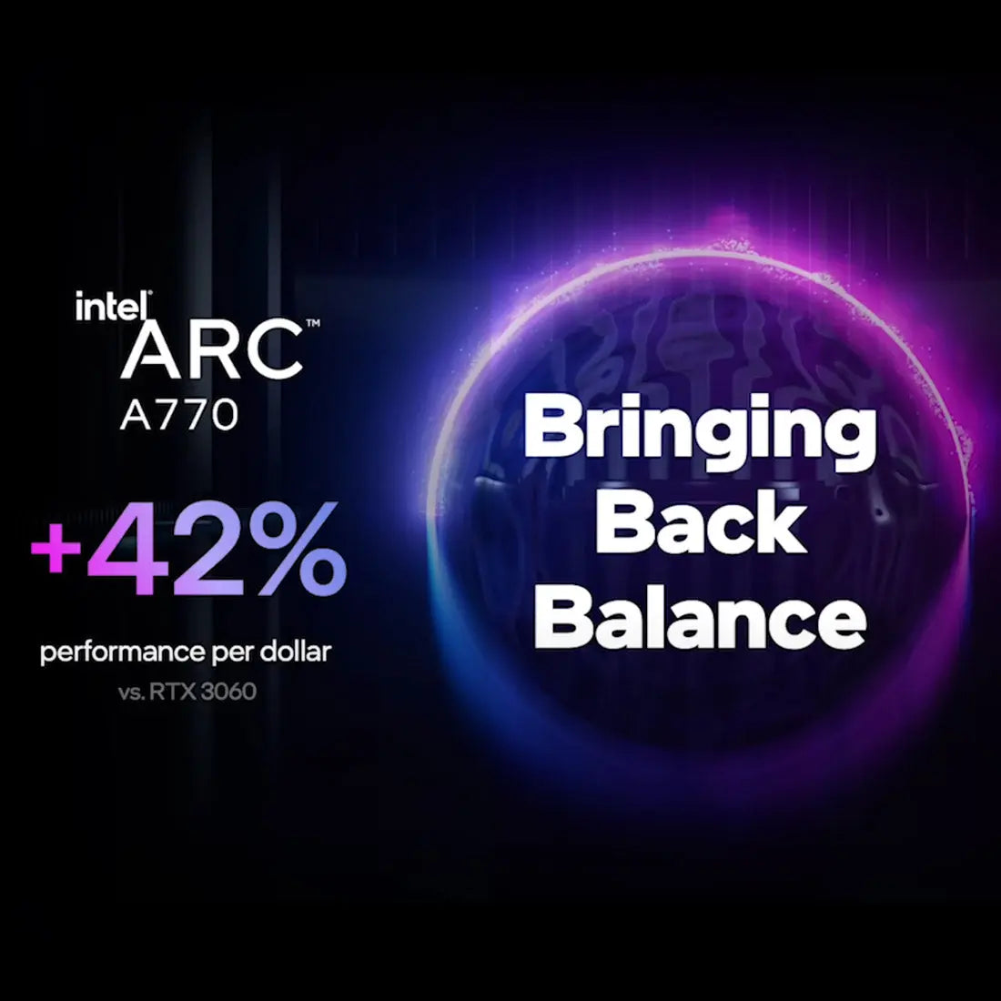 - Powered by Intel's latest Xe HPG Architecture the ARC A770 Graphics Card is equipped with 32 Xe cores, 512 Xe Vector Engines and 16GB GDRR6 memory.